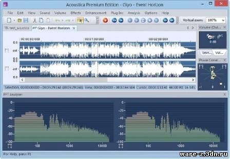 Acoustica Premium — полнофункциональный звуковой редактор с поддержкой многоканальных звуковых форматов 5.1 и 7.1 surround. Инструменты программы обеспечат точное управление деталями производства аудио CD (длина пауз, индексные маркеры, поля CD-TEXT).